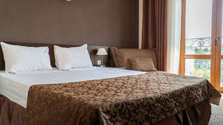 Это однокомнатный номер площадью 26 кв.м с совмещенный гостиной и спальной зоной, отдельным санузлом. В номере двуспальная кровать, 2 прикроватные тумбы, ЖК ТВ, комод, стол письменный с зеркалом, тумба под холодильник со встроенным мини-холодильником, микроволновая печь, чайник и чайный набор, диван-кровать, журнальный стол, шкаф для одежды, багажная тумба, прихожая с зеркалом. В номере есть кондиционер, большой балкон с видом на море. Количество спальных мест: 2 (и возможны +2 дополнительных места)