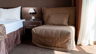 Цена указана за проживание на 1-2 человека. При заселение больше чем двое персон - выберите услугу "дополнительная кровать". Номера этой категории представляют собой двухкомнатные номера площадью 47 кв.м. с прихожей и небольшой встроенной кухонной зоной (мойка, холодильник, микроволновая печь, чайник). В уютной гостиной большой диван и кресло-кровать. В спальне большая двуспальная кровать и комод с зеркалом. Также в номерах имеется 2 отдельных балкона, в каждой комнате отдельный ЖК ТВ. В номерах установлены кондиционеры. Количество спальных мест: 2 (и возможны +3 дополнительных места)